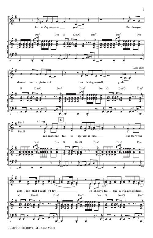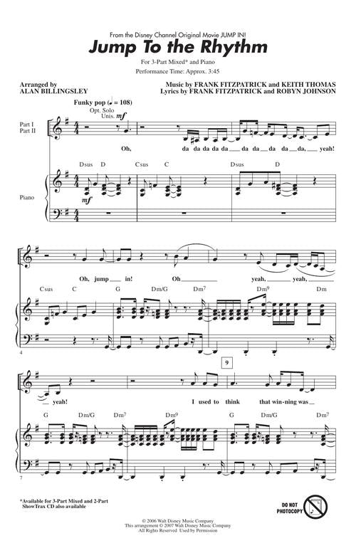 Feel the power of the music and the rhythm! Over eight million people watched the Disney Channel movie Jump In and this energetic single shows you why. Available separately: 3-Part Mixed, 2-Part, ShowTrax CD. Duration: ca. 3:45.