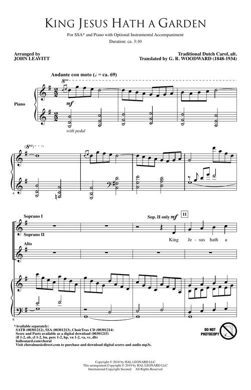 A historically significant sacred text often sung at Christmas is actually usable throughout the year. Springing from a traditional Dutch carol, the arrangement captures the elegance of the lyrics and a supportive accompaniment makes quick study of the learning. Moments of choral division build shimmering towers of luscious sound. A cathedral-worthy ending! Score and Parts (fl 1-2, ob, cl 1-2, bn, perc 1-2, hp, vn 1-2, va, vc, db) available as a digital download.