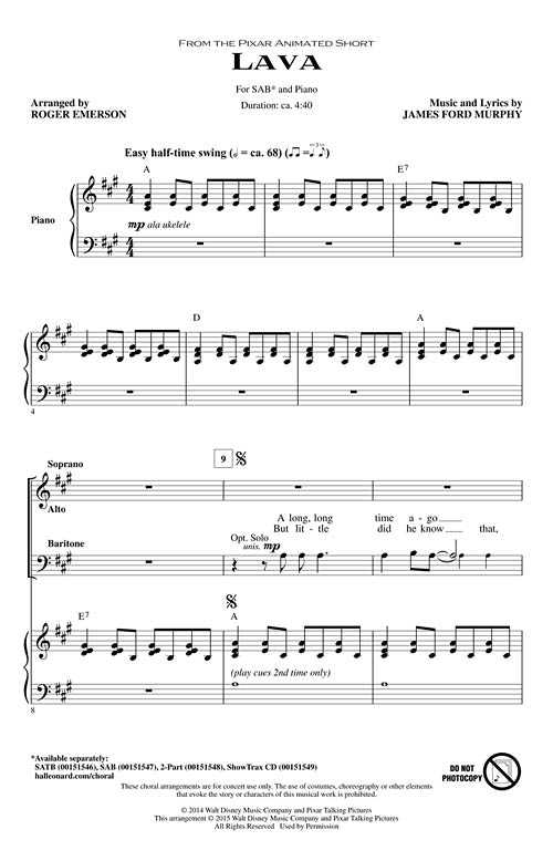 From the Disney/Pixar short film that accompanied the 2015 hit movie Inside Out, this sweet lava story will have everyone singing along! Perfect for adding ukuleles, this is a sensational encore or change of pace for all types of concerts!
