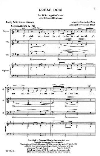 Lchah Dodi Transcontinental Music Choral Sab Mordechai Zeira