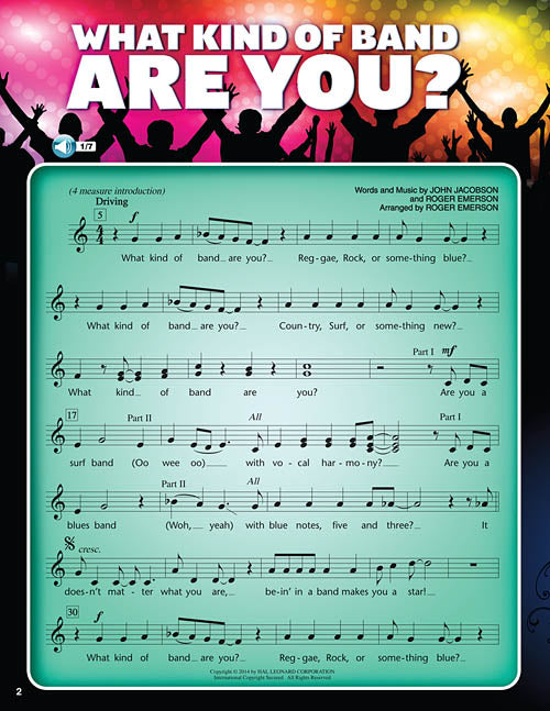 Our brilliant and talented music teacher gave us a FUN assignment - form a band and play for you! BUT we have studied so many cool styles in this fantastic music class, we don't know what kind of band we want to be! Come on down to the Twist and Shout and explore some great country, reggae, Motown, surf and blues like you've never heard it before! Perfect for upper elementary and middle school singers, this jammin' musical revue features entertaining hits from the past, carefully arranged by Roger Emerson for younger unison voices along with some optional harmony. Add the program dialog and choreography by John Jacobson for some great dancing in the street! And there's more! Extend learning with interesting online video interviews that explore rockin' horns, playing reggae, country fiddle, harmonica and more! The Teacher Edition features reproducible program dialog, piano/vocal arrangements and choreography. The Singer Edition 20-pak features singer parts in attractive full color spreads. 25 minutes. Suggested for Grades 4-8. What kind of band do you want to be?