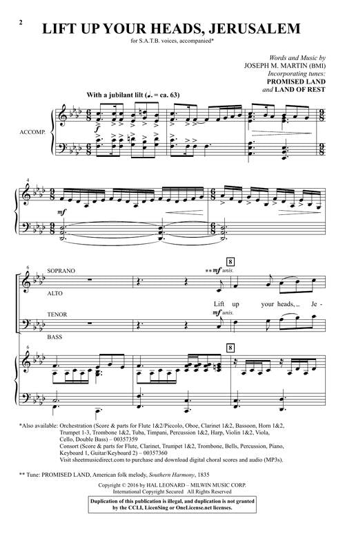 From the cantata Sacred Places, the festive spirit in this Palm Sunday piece is evident from the very first measure! Springing from two cherished American hymn tunes, PROMISED LAND and LAND OF REST, the jubilant 6/8 meter captures the sway of palm fronds. A quote from All Glory, Laud and Honor recalls the triumphal entry as praise echoes through the modern sanctuary. Thoughtful part writing enables a speedy learning process as the piano offers an almost orchestral support for the vocals. Triumphant! Score and Parts for Full Orchestra (fl 1-2/pic, ob, cl 1-2, bn, hn 1-2, tpt 1-3, tbn 1-2, tba, timp, perc 1-2, hp, vn 1-2, va, vc, db) and Consort (fl, cl, tpt 1-2, tbn, bls, perc, pno, kybd 1, gtr/kybd 2) both available as a digital download.