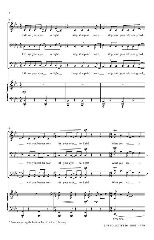 Given everything our communities, choir, and world have experienced recently, we could all use a bit of light. This high energy, uplifting piece encourages us to tend to our hearts and to others, remembering that each of us has the power to bring light into our own lives-and into the lives of others. Featuring a supportive, rhythmic piano accompaniment and accessible vocal lines, this piece will have singers and audiences movin' and groovin'.