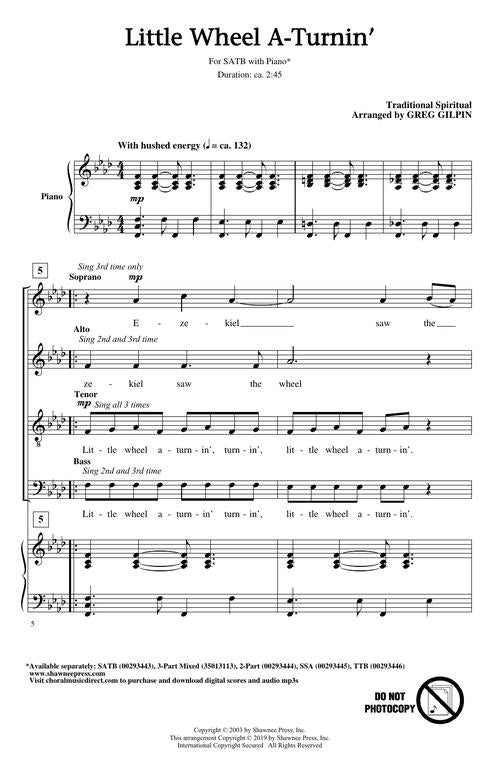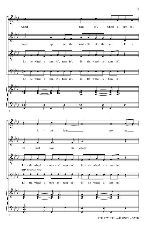 This popular choral arrangement is now available in many voicings to fit a variety of choirs! A repeated vocal pattern creates the feel of a spinning wheel with the iconic spiritual melody riding above, crafted with energy and drive. Discover again this great arrangement for everyone to sing!