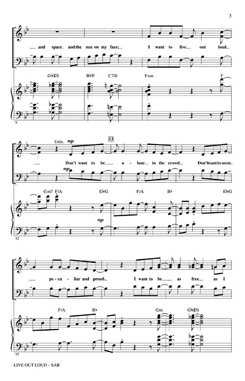 Andrew Lippa's exuberant and buoyant song from A Little Princess makes a delightful showcase for all types of choral groups. Full of joy and energy, the song makes an ideal addition to graduation and many other programs. Available separately: SATB, SAB, SSA, ShowTrax CD. Duration: ca. 3:04