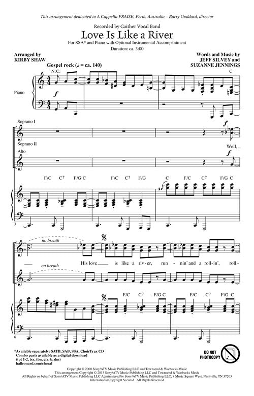 Mercy overflowing, rushing and rolling - the inspirational sounds of the Gaither Vocal Band's southern gospel classic liken God's love to a great river and will lift your concert to new heights of celebration! Available separately: SATB, SAB, SSA, ChoirTrax CD. Combo parts (tpt 1-2, tsx, tbn, gtr, b, dm) available as a digital download. Duration: ca. 3:00.