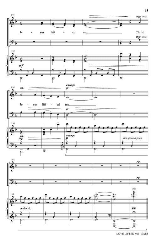 A well-known hymn text speaks through a fresh musical treatment in this evocative choral offering. A murmuring piano motive in minor introduces a testimony to God's saving love, while the main theme suggests the spirit of a folk song or rustic sea shanty. As the anthem develops, the piano accompaniment expands, adding a theatrical sweep to the concept.