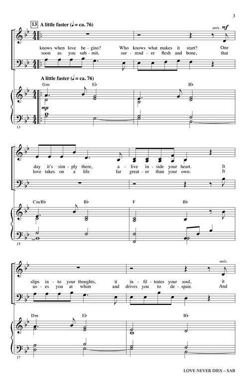 Andrew Lloyd Webber's beautiful and haunting musical is the sequel to his most famous show The Phantom of the Opera. This powerful love song is full of passion and beautifully explores the hold that love possesses over us. The healing power of love is celebrated.
