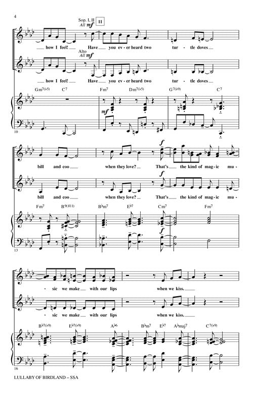 Treble choirs will dig this laid back jazz classic! Opening with a walking bass line in a medium swing, the vocals enter with an optional solo or unison melody line. The arrangement gradually grows harmonically and includes a written or improvised scat section, with a strong build to the final chorus. Challenging but impressive for high school women, advanced children's choir and up! Duration:2:40