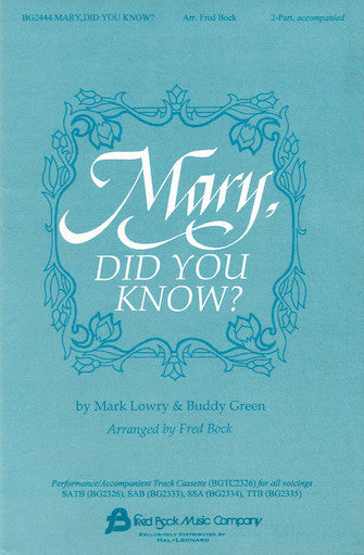 Fred Bock's setting of this popular Buddy Green tune continues to be one of the best selling choral pieces in teh Bock catalog. Also avaailable in SATB, SSA and TTBB.