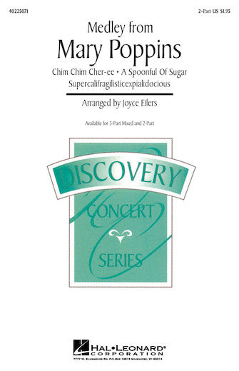 Everybody has fun singing songs from Mary Poppins! Enjoy this accessible medley of Chim Chim Cheree, A Spoonful of Sugar, Supercalifragilisticexpialidocious. Available: 2-Part, 3-Part Mixed. Performance Time: Approx. 4:45.