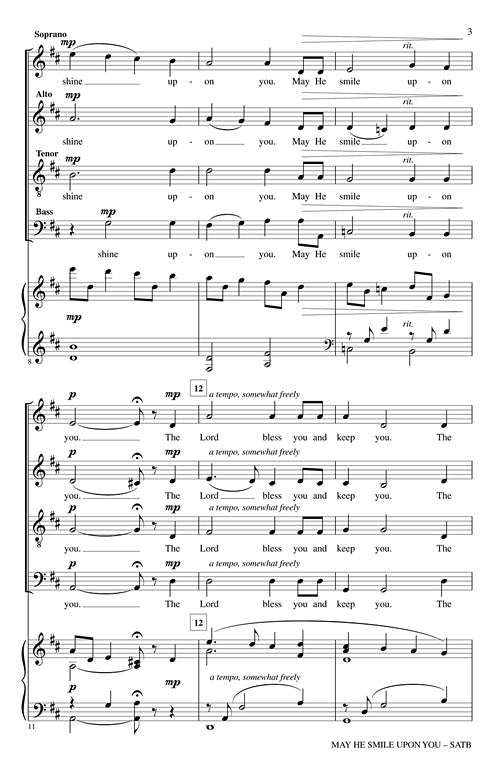 Uses: General, Benediction, Concert Scripture: Numbers 6:24-26 This rendition of the familiar Aaronic blessing finds new ways to embrace this celebrated scripture. Vocal layering creates a peaceful texture, while true four-part writing gives all voices an equal role in the sonic stack. In just a brief period, this piece achieves a wide range of dynamic and expressive contrasts. A perfect choice as a benediction or concert closer.