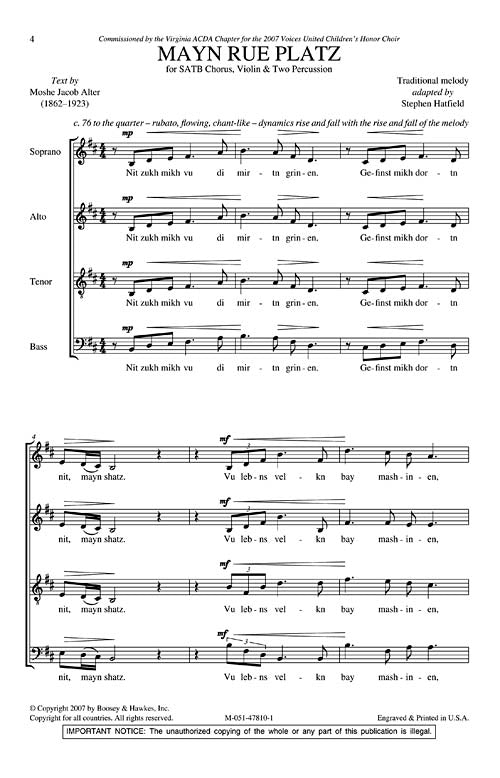 Written for the Virginia ACDA Voices United Children's Honor Choir, this is a Yiddish lament set to an unstoppable dance groove. The rhythms and melodic contour evoke the Middle East without being culturally specific, and driving percussion fuels cantabile vocal lines. A unique piece that will not soon be forgotten!