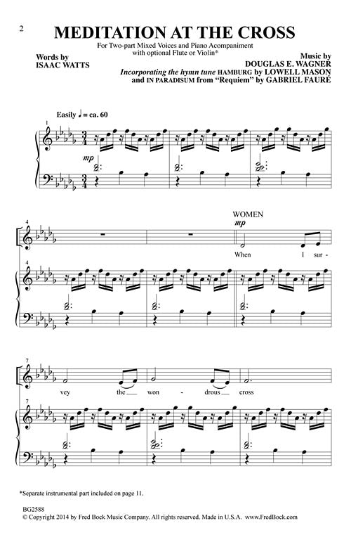 Meditation At The Cross Fred Bock Publications 2 Part Mixed Dougl