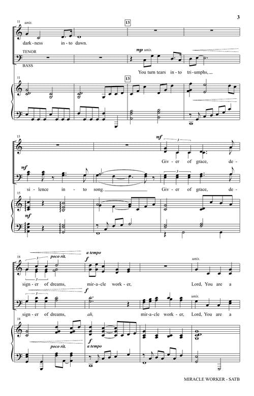 An exquisite testimony of faith, this magnificent anthem engages the listener's heart with emotive melodies and sensitive harmonies. Each measure overflows with layers of beauty, creating a worshipful spirit, honoring the signs and wonders of Jesus' ministry among us.