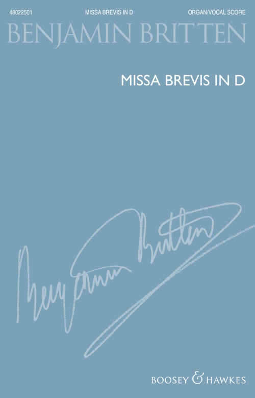 Following a performance of his Ceremony of Carols, Benjamin Britten was moved to write this Missa Brevis for the boys of Westminister Cathedral Choir and their director George Malcolm. In order to have it completed before Mr. Malcolm retired, Britten created this short form Missa Brevis which he affectionately called his mass in short trousers.