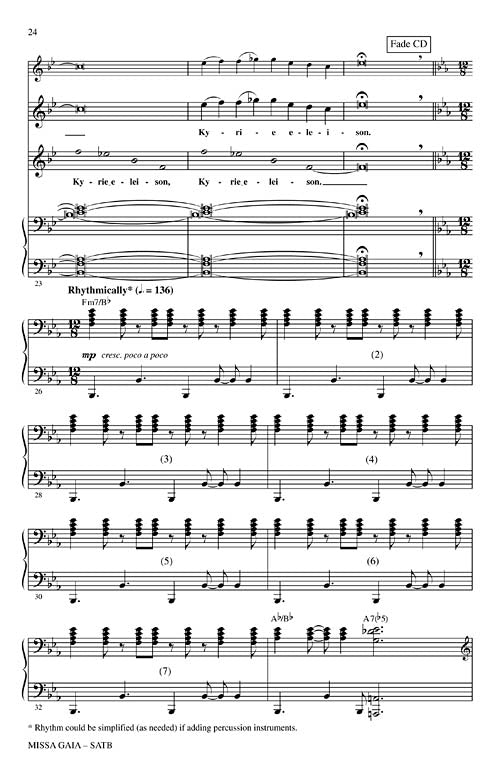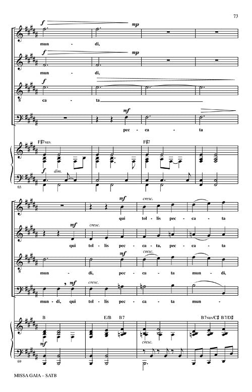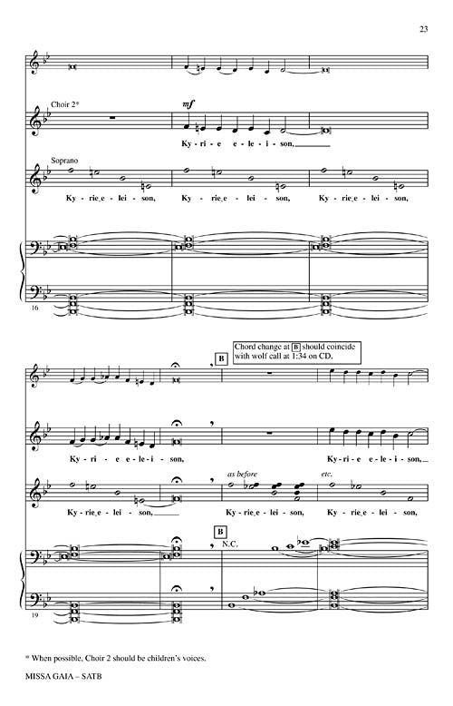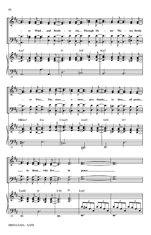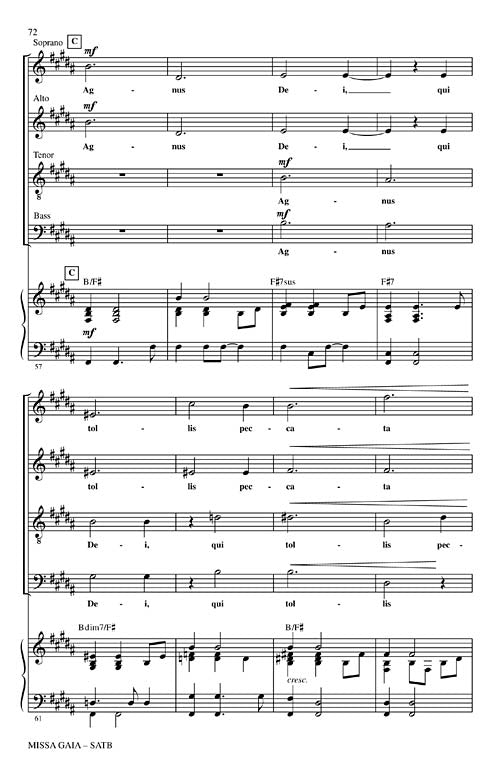 Now available separately: the first time in print! The Paul Winter Missa Gaia (Earth Mass) was first performed in 1981 in the New York's Cathedral of St. John the Divine and is a contemporary ecumenical celebration of the Earth. Featuring the Consort's signature lyrical melodies with African, Brazilian and American gospel traditions it interweaves wolf, whale and harp seal voices with those of the choir. May be performed in both liturgical and concert settings. Publications available: SATB score, Sound Cues CD (animal voices) and Instrumental Score and Parts for Soprano Sax, Oboe/English Horn, Cello, Piano, Organ, Guitar, Bass and Percussion. Total Performance Time: Approx. 36 minutes.