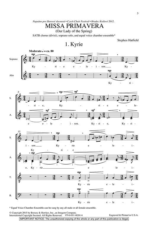 This four movement Missa Brevis (Kyrie, Sanctus, Gloria and Agnus Dei) is full of multicultural influences with deep roots in the dance. Drawing from Bulgarian rhythm and melodic contour, Turkish finger cymbals, mandolin figures of bluegrass waltzes, plainsong chant and the Peking Opera this is a fresh and exciting look at a traditional musical form.