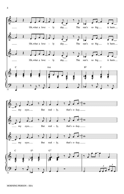 From the Broadway musical Shrek, Princess Fiona sings this song as she wakes to greet the dawning of a new day after spending the night as an ogre. Your SSA groups will enjoy stretching their dramatic skills with this humorous selection.