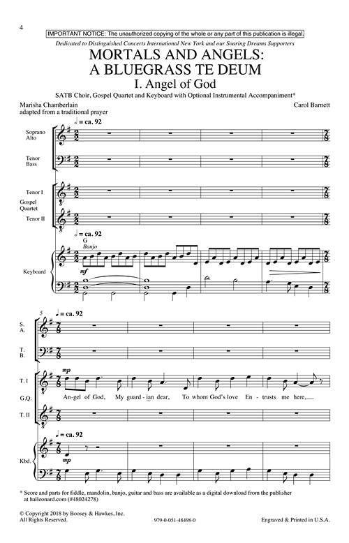 The Te Deum is a Latin prayer that has been set to music countless times. But never before has there been a Te Deum for multiple choirs and Bluegrass band. Building on the immense success of The World Beloved: A Bluegrass Mass (48019834), this new major work casts the adult choir as the Angels, the Bluegrass band as The Mortals and the children's choir as the ever evolving mix of both. Here is a new major work that is equally at home on the concert stage and in the sanctuary.