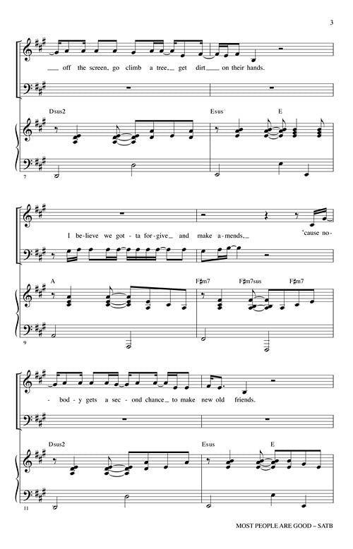 Here is an easy, soft rock with a gentle back beat country song from Luke Bryan about many of the things that are good in this world. There is more good than bad. The ranges are excellent and will encourage your singers to sound great in this well crafted arrangement. Vocal sections are given room to shine. This is a real feel good/pick me up song with a message that no one hears enough of.