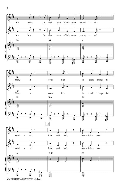My Christmas Sweater Discovery Level 1 2-Part Dig to the back of your closet for your best ugly Christmas sweater and make it the highlight of your holiday program! All in fun, this song lends itself well to choreography and your singers and audiences will love it! ScorePlay - click to view score with recording. (https://youtu.be/K8IdxQAvdtA) Inventory # : 00144265 UPC: 888680061074 Width: 6.75" Length: 10.5" Height: 0.029" Product Weight: 0.1 lbs. Number of Pages: 12