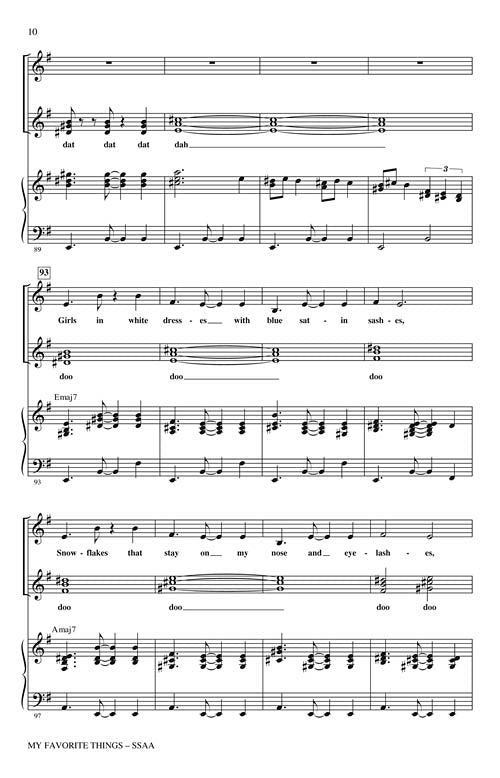 Ever since John Coltrane's 1961 recording, Rodgers & Hammerstein's My Favorite Things has been a favorite choice for jazz improvisation. Mitos Andaya's SSAA setting is second to none for advanced women's ensembles and all-state honor groups. Duration: ca. 5:15 (without instrumental break).