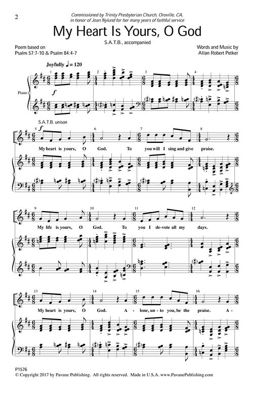 With a rollicking 6/8 and 4/4, back and forth, rhythm, this piece dances from the start. Based on Psalm 57:7-10 and Psalm 84:4-7, the text is a song of praise. A contrasting middle section is much slower and more tender. The final section returns to the opening motif and drives to a thrilling conclusion. Easy to medium for church choirs.