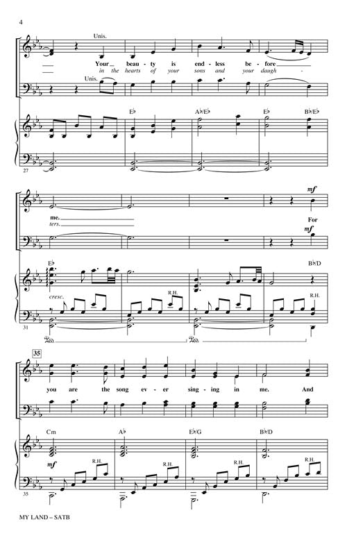 This stirring song from Celtic Woman's Orla Fallon is simply breathtaking! The music is a tribute to the people and landscapes she loves and the beautiful music they inspire. An excellent addition to patriotic and folk music concerts, or for Irish themed events! Available separately: SATB, SAB, SSA, ShowTrax CD. Instrumental parts available as a digital download (ob [fl], fl, cl, pipes [vn], syn 1-2, gtr, b, cym, toms, bd). Duration: ca. 3:50 (ca. 5:15 for extended version).