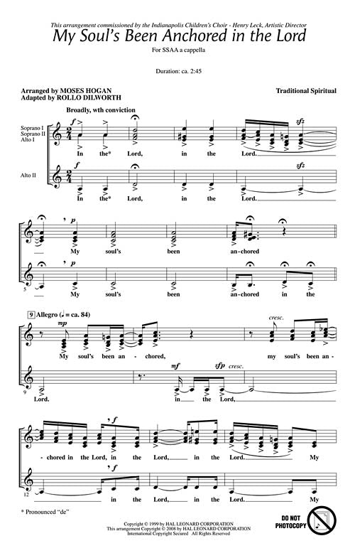 Moses Hogan/adapted Rollo Dilworth