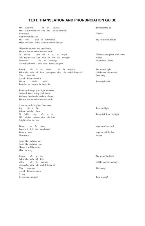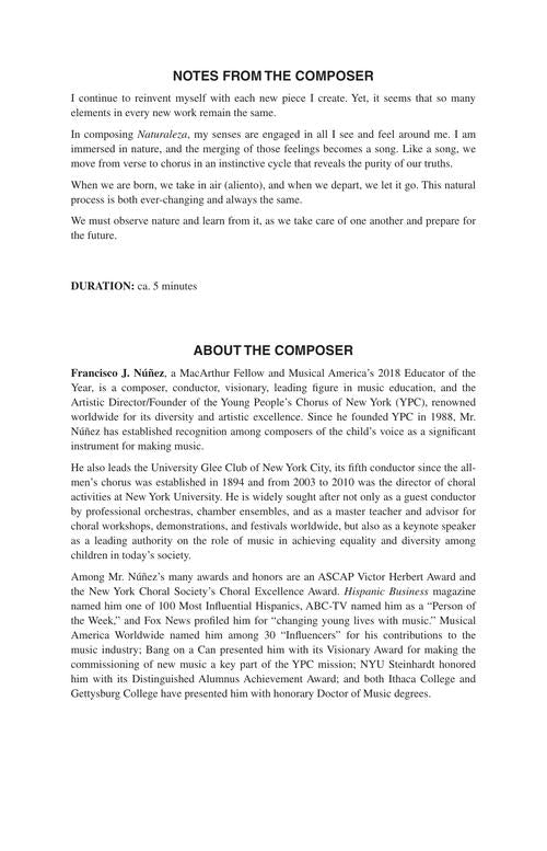 The composer writes, We must observe nature and learn from it, as we take care of one another and prepare for the future. The music is rhythmic and pulsing with vibrant life-- a joy to sing!