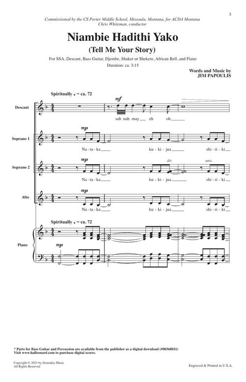 Niambie Hadithi Yako (tell Me Your Story) Small Voices SSA Jim Pa