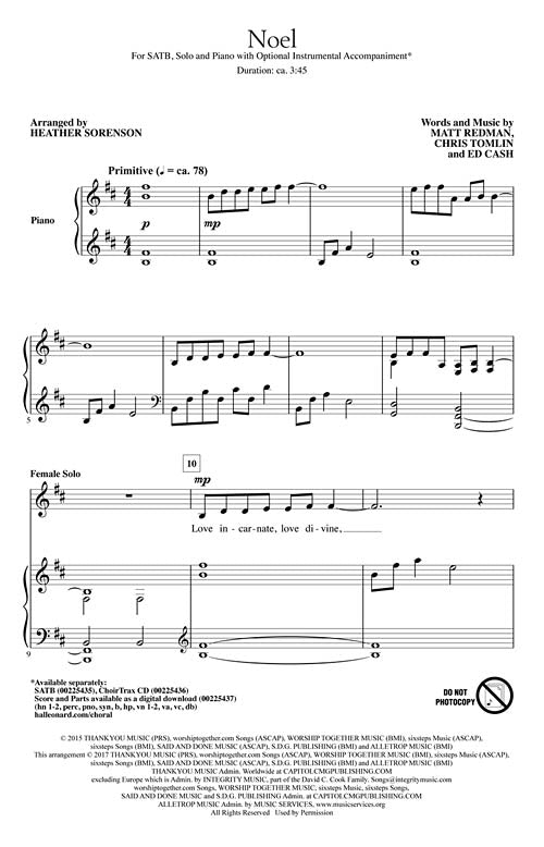 Share the good news with the music of one our most popular contemporary artists. There is a primal power in this arrangement that uses call and response elements to deliver the message and miracle of Christmas. The solo part is important, but not difficult, and the vocal ranges and writing are approachable for choirs of any size. An excellent crossover choice ideal for both traditional and contemporary services, this song is destined to be a holiday standard as the years go by. Noel! Come and see what God has done... the story of amazing love. Score and Parts (hn 1-2, perc, pno, syn, b, hp, vn 1-2, va, vc, db) available as a digital download.