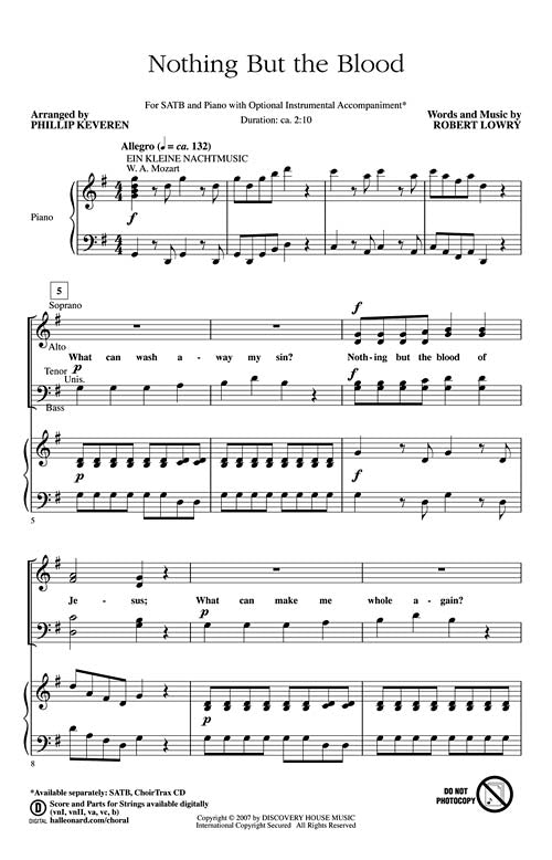 What do Robert Lowry and Mozart have in common? Phillip Keveren! In Neo-Classical style, Keveren has set the traditional hymn text and tune against Mozart's Ein Kleine Nachtmusik for a spectacular listening and singing experience. A ChoirTrax and Instrumental Pak (strings) provide additional rehearsal and/or performance options. Available separately: SATB, ChoirTrax CD. Score and Parts for Strings available digitally (vn1, vn2, va, vc, b). Duration: ca. 2:15.