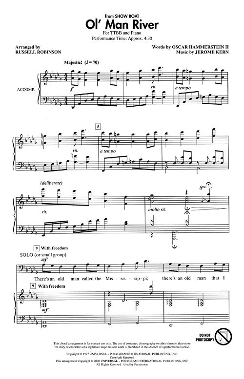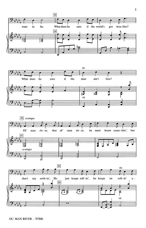 The rich harmonies of this Broadway classic will resound with a men's chorus. A wonderful choice for high school and up. Performance Time: Approx. 4:30