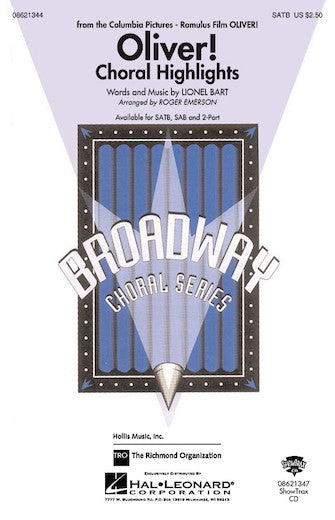 A perfect way to introduce the music from one of Broadway's classic musicals. Originally staged in 1960, Lionel Bart's musical tale of Dickens' Oliver Twist still charms today's audiences. Includes: Consider Yourself, Food, Glorious Food, I'd Do Anything, and Where is Love?Available separately: SATB, SAB, 2-Part and ShowTrax CD. Performance Time: Approx. 8:00.