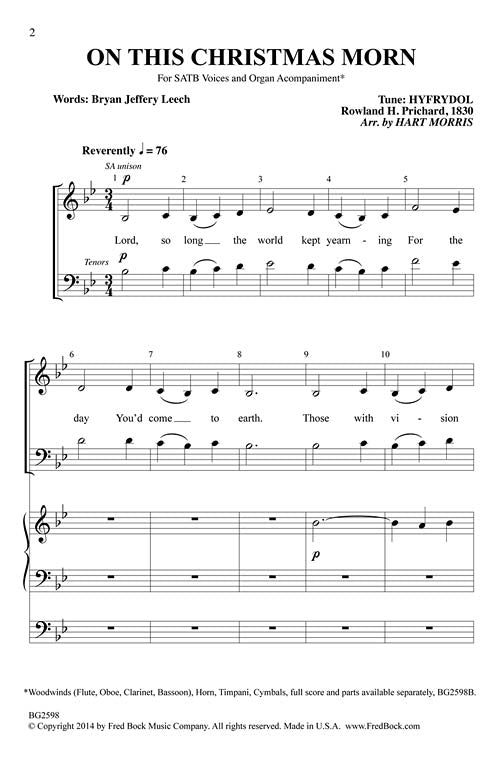 In stately elegance Hart Morris dresses this familiar carol with procession and pageantry. Building from an a cappella simplicity the anthem swells with organ and optional woodwinds into a full and glorious finish.
