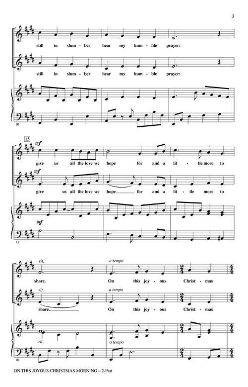 Let the joy of Christmas fill your heart in this well-crafted original that's perfect for younger ensembles. An excellent selection for building choral reading and performance skills, it will be a fine addition to December concerts. Available separately: 3-Part Mixed, 2-Part, ShowTrax CD. Duration: ca. 2:50.