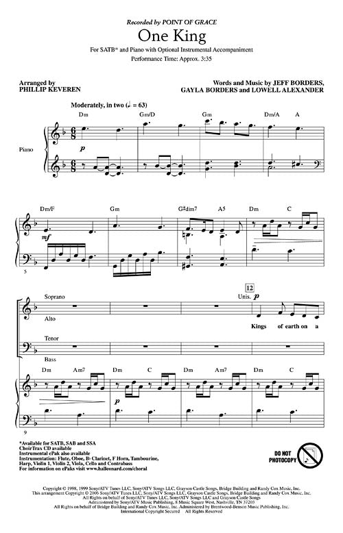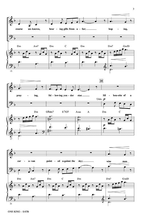 This song by the popular group Point of Grace tells the story of the Magi as they travel to see the tiny King who holds the hope of the world. Incorporates God Rest Ye Merry Gentlemen.Available separately: SATB, SAB and SSA. Instrumental ePak includes score and parts for Flute, Oboe, Bb Clarinet, F Horn, Tambourine, Harp, Violin 1, 2, Viola, Cello and Contrabass. ChoirTrax CD also available. Performance Time: Approx. 3:35
