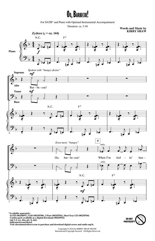 With a really hot band scored for horns and rhythm section, a super hot and driving Zydeco style and crazy, fun lyrics this will be both the singers and audience favorite. A perfect change of pace for your show or concert.