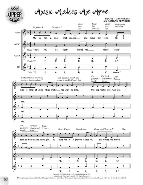 Connect music with movement, dance and speech in active participation - while having lots of fun! Learn about beat and rhythm, melodic patterns, pitch direction, tempo, solfege, syncopation, and much more with this creative collection from the pages of Music Express magazine. There is something for all elementary ages, including 16 songs and activities created specifically for lower grades, and 16 songs for upper grades. Music specialists Cristi Miller and Kathlyn Reynolds have also provided helpful teaching sequences and simple Orff or piano accompaniments for enhanced learning and participation, and the music pages are all reproducible! 32 songs including: Bunny Boogie, Can You Move Like Me? Drum Game Song, A Lizard Named Claude, Rhythm and Beat, Jump Jive, Pass the Rock, Music Makes Me Move, and much more! Available: Collection with reproducible pages. Suggested for Grades 1-6.
