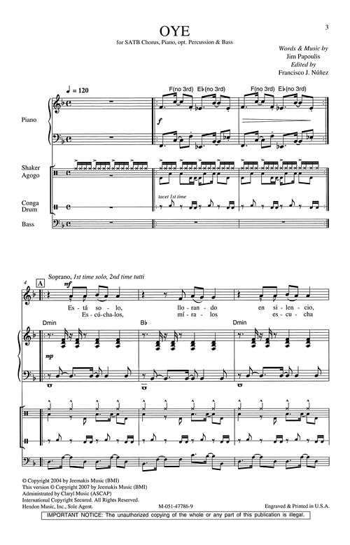 Composer Jim Papoulis created this uplifting Spanish original as a result of his work with children in Mexico. The message that the Mexican children wanted to convey to the world: Listen. With optional percussion and bass.