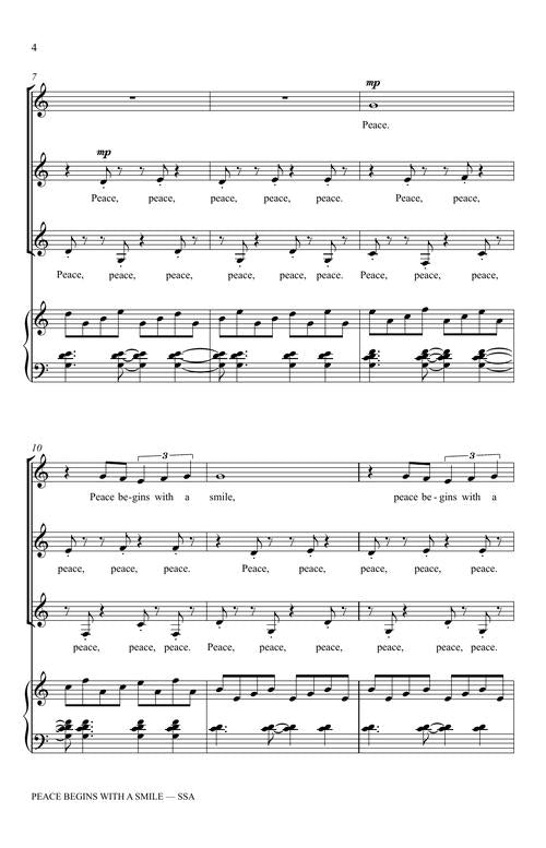 A smile, like music, is universal. The simplicity of Mother Teresa's quote and the repetition of the word peace is used to great effect in this expressive and rhythmic composition from New York-based composer Annie Pasqua.