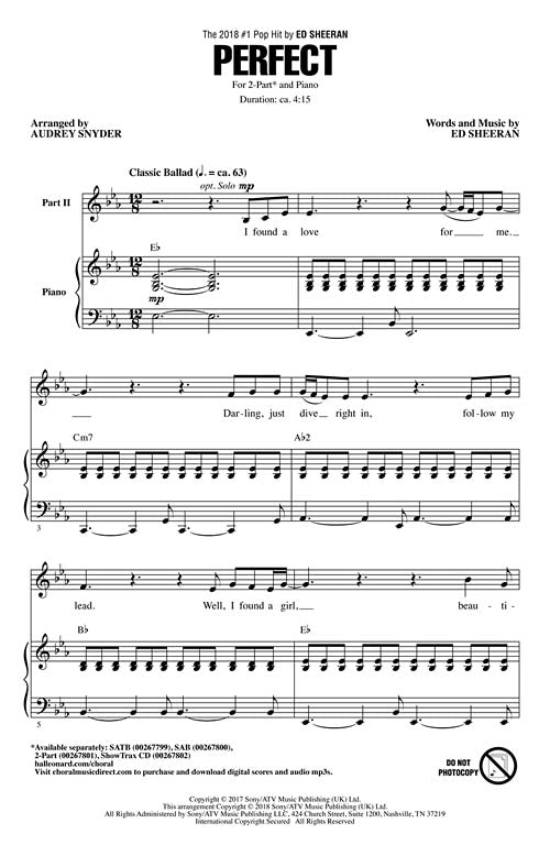 The stand-out ballad from Ed Sheeran's album Divide is a love song for the ages. Sung as duets with both Beyoncé and Andrea Bocelli, the song catapulted to #1. Your choirs will fall in love with the melody that is shared between all parts and will captivate audiences with its beauty and depth.