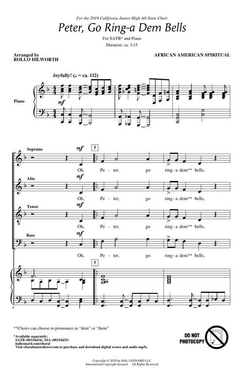 Another gem from one of today's preeminent arrangers of spirituals, Rollo Dilworth. Dilworth uses his signature style of textural layering, jazz/blues harmony, and vocal articulations to set this well-known tune. Available for both SATB and SSA voicings.