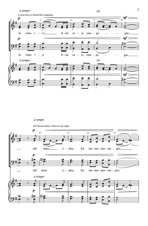 Three French Canadian folk songs make a superb set for any concert program. The Small Rock finds our poet climbing the hills to find comfort, wishing for wings like the birds she hears, and finally praying to God and the Holy Virgin for help. Provided in the original French, all three songs enable an exploration in French-speaking Canada. J'ai Cueilli la Belle Rose, Petit Rocher, and EnRouland Ma Boule Roulant.