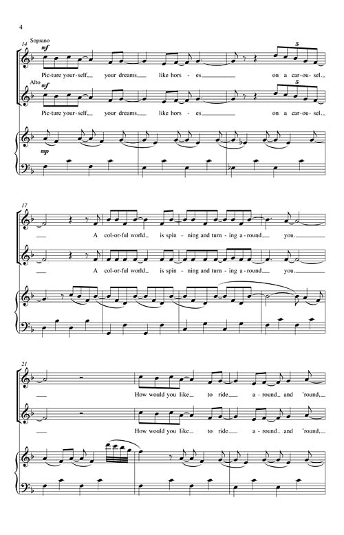 This is an energetic and uplifting song about the joy of young people spinning and turning. The music spins and stops like a pinwheel whirling through the air.