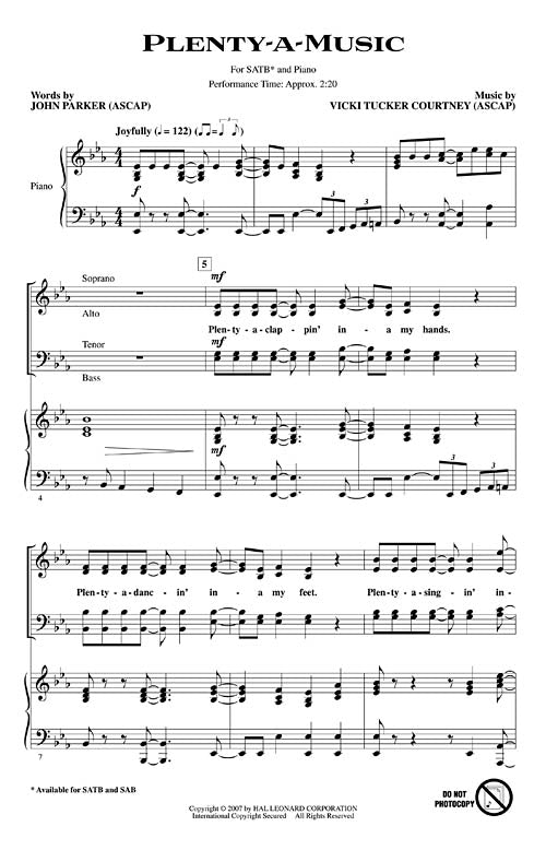 Celebrate the power of music with this joyful work that's easily learned and effective in performance! Plenty-a-singin' in-a my heart, plenty-a-music down in-a my soul.Available separately: SATB and SAB. Performance Time: Approx. 2:20