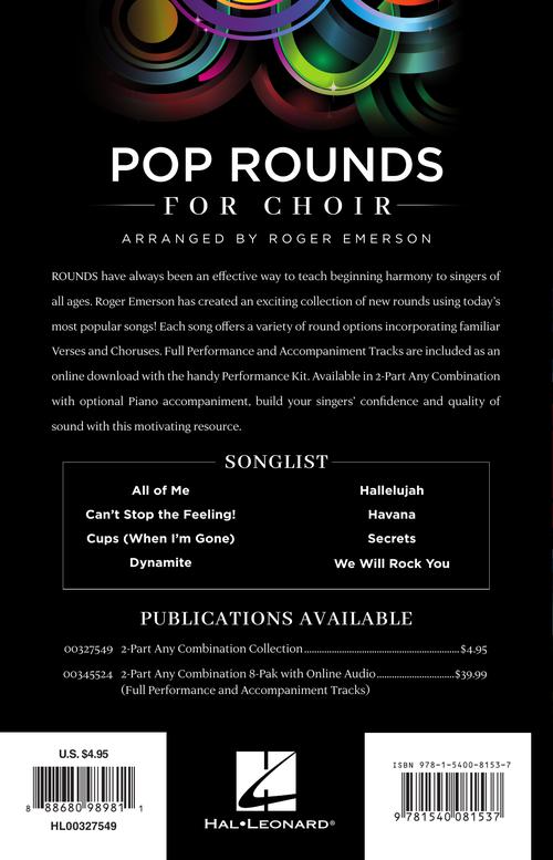 Singing rounds has always been an easy way to introduce harmony to young singers. Now they can enjoy rounds based on the hit pop songs by John Legend, Anna Kendrick, Camila Cabello, Justin Timberlake and more! Each Performance Kit comes with 8 books and a code to access Full performance and Accompaniment recordings. Audio is accessed online using the unique code inside the kit and can be streamed or downloaded. The audio files include PLAYBACK+, a multi-functional audio player that allows you to slow down audio without changing pitch, set loop points, change keys, and pan left or right.