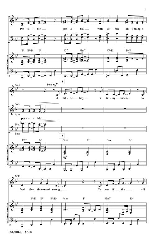 This up-tempo song by Annette Oden and Dave Noel talks about how anything is possible with Jesus in control. Creatively arranged by BJ Davis. Available separately: SATB, CD Accompaniment Trax, Orchestration. Duration: ca. 3:15.